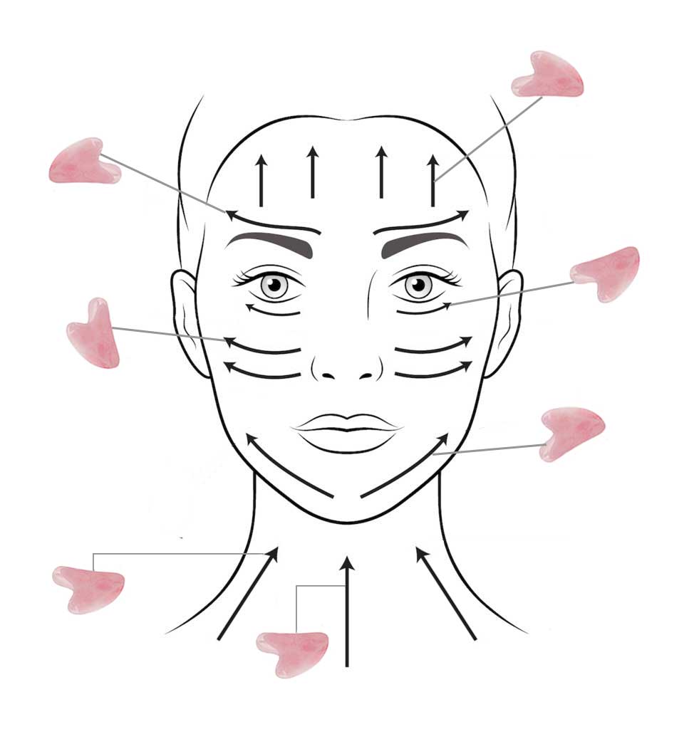 - A jáde rollert gyenge mozdulatokkal görgetjük, nem nyomjuk a bőrre erősen és soha nem előre-hátra mozgatjuk. Fontos, hogy nyakon fentről lefelé, arcon lentről felfele és kifelé a nyirokcsomók felé haladjunk, mert a nyirokrendszerben felhalmozódott méreganyagok távozását szeretnénk serkenteni.